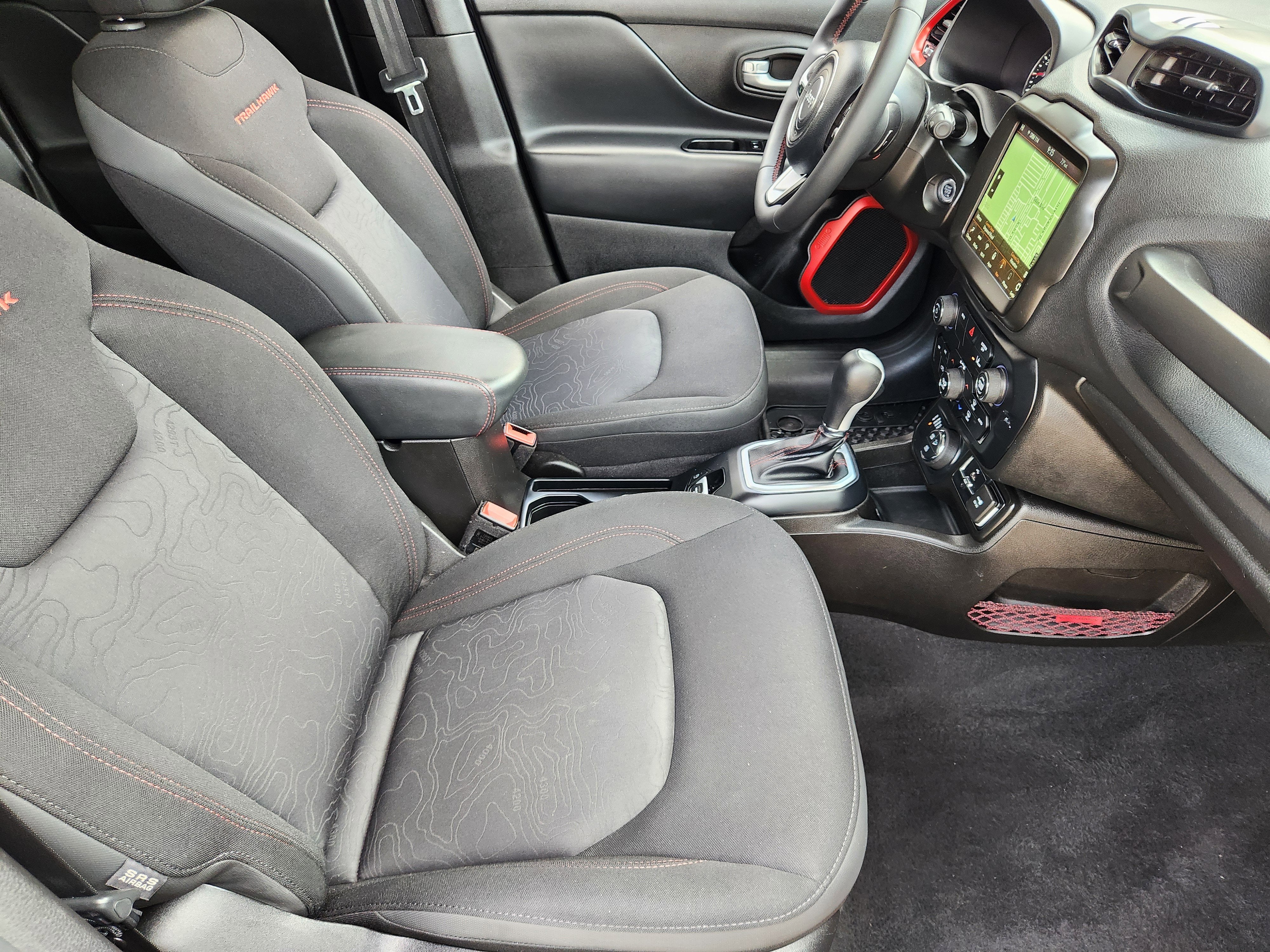 Recent Arrival! CARFAX One-Owner. This Used 2023 Slate Blue Pearlcoat Jeep Renegade Trailhawk 1.3L I4 9-Speed 948TE Automatic 4WD is well equipped and includes these features and benefits: Quick Order Package 22C, 4-Wheel Disc Brakes, 4.585 Final Drive Ratio, 6 Speakers, ABS brakes, Air Conditioning, Alloy wheels, AM/FM radio: SiriusXM, Anti-whiplash front head restraints, Apple CarPlay/Android Auto, Auto-dimming Rear-View mirror, Automatic temperature control, Brake assist, Compass, Delay-off headlights, Driver door bin, Driver vanity mirror, Dual front impact airbags, Dual front side impact airbags, Electronic Stability Control, Emergency communication system: SiriusXM Guardian, Four wheel independent suspension, Front anti-roll bar, Front Bucket Seats, Front Center Armrest, Front dual zone A/C, Front fog lights, Front reading lights, Fully automatic headlights, Heated door mirrors, Illuminated entry, Knee airbag, Leather Shift Knob, Leather steering wheel, Low tire pressure warning, Navigation System, Normal Duty Suspension, Occupant sensing airbag, Outside temperature display, Overhead airbag, Panic alarm, ParkView Rear Back-Up Camera, Passenger door bin, Passenger vanity mirror, Power door mirrors, Power steering, Power windows, Premium Cloth Low-Back Bucket Seats, Radio data system, Radio: Uconnect 4C Nav w/8.4" Display, Rain sensing wipers, Rear anti-roll bar, Rear window defroster, Rear window wiper, Remote keyless entry, Roof rack: rails only, Security system, Speed control, Split folding rear seat, Spoiler, Steering wheel mounted audio controls, Tachometer, Telescoping steering wheel, Tilt steering wheel, Traction control, Trip computer, Turn signal indicator mirrors, Variably intermittent wipers, Voltmeter, and Wheels: 17" x 7" Glossy Black Diamond Cut.